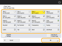 If a screen other than that for specifying the paper size and type is displayedIf a message prompting you to adjust the paper guide is displayed, adjust the width of the paper guide again and press <OK>. |