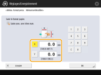 Spécifiez la longueur du côté <X> et celle du côté <Y>. Appuyez sur <X> ou <Y> pour saisir la longueur de chaque côté avec le clavier numérique.