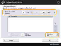 2 | Recherchez les appareils clients destinataires. Appuyez sur <->/<+>, en regard de <Niveau de recherche (Routeur)>, afin de définir la plage de recherche, puis appuyez sur <Début rech. auto>. ![]() Les imprimantes multifonctions du réseau s'affichent. |
