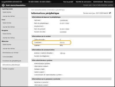 Vérifiez la version indiquée dans [Contrôleur] dans [Informations sur la version].