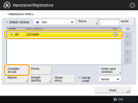 Premere <Destinazione inoltro> e specificare la destinazioni di inoltro.Registrazione delle destinazioni nella Rubrica