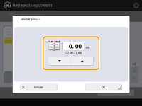 Si vous effectuez une impression avec agrafage à piqûre à cheval au moyen du module de finition de livret en option, et si vous remarquez que les plis du papier ne se situent pas exactement au milieu de la brochure, il est possible de corriger la position de pliage pour compenser cette erreur. Réglez la position de pliage du papier et la position de piqûre à cheval en même temps.