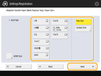 2 | Selecione o tamanho do papel. ![]() ![]() Para informações sobre os tamanhos de papel exibidos quando <Other Size> é pressionado, consulte Papel disponível |