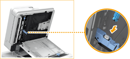 フィーダー上部のレバーを引いて、原稿読み取りエリアカバーを開きます。