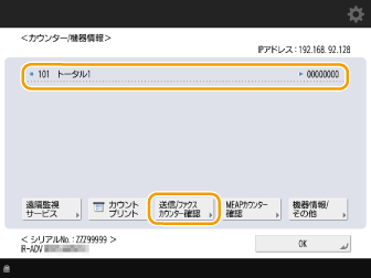 (カウンター/機器情報)または[カウンター/機器情報]キー(立面操作部が装着されている機種の場合)を押す