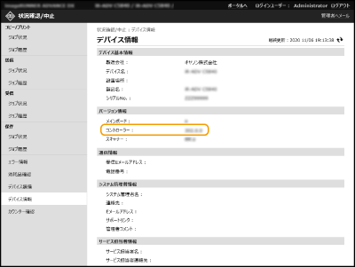 [バージョン情報]の[コントローラー]に表示されているバージョンを確認する