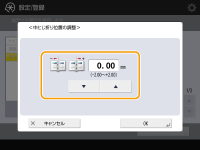 オプションの中綴じフィニッシャーを使って中とじ印刷したときに、折り位置が用紙の中心からわずかにずれる場合は、折り位置が中心になるように微調整します。