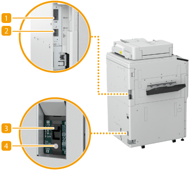 Use this port to connect the Super G3 2nd Line Fax Board to the machine.