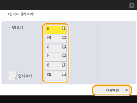 용지 크기를 선택하고 <다음화면>를 누르십시오.
