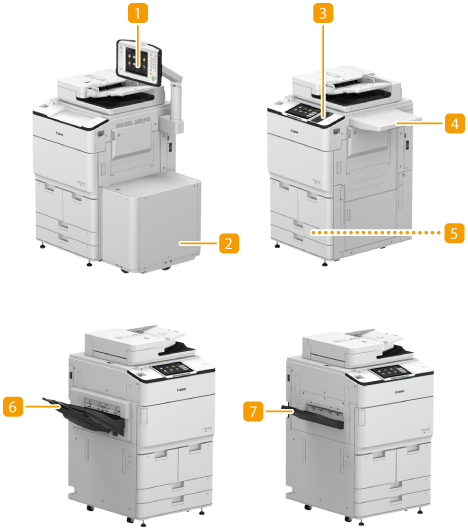 기기에 설치할 수 있는 옵션 조합에 대한 자세한 내용은 대리점이나 서비스 담당자에게 문의하십시오. 기기에 설치된 옵션 장비의 구성에 따라 일부 설정은 표시되지 않을 수 있습니다. |