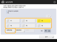 <수동급지대 용지의 기본 설정>에서 <매회 지정모드>를 <자주 사용하는 용지>로 설정하면 수동 급지대에 용지를 넣을 때 해당 "자주 사용하는 용지"를 선택할 수 있게 해주는 화면이 표시됩니다.<수동 급지대 기본설정 등록> |