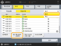 1 | <송신> 또는 <수신> <작업이력>를 누르십시오. |