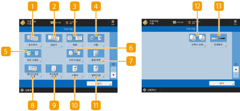 | <시험인쇄>는 여러 인쇄를 수행하면서 다음 설정 중 하나를 동시에 설정한 경우에만 나타납니다. 사용 가능한 기능은 모델 및 설치한 옵션에 따라 다를 수 있습니다. <소트 (한부씩)> <시프트> <90도 회전> <스테이플+ 소트> <제본> <앞표지> <삽입지> 여러 파일을 선택한 경우 <결합하여 인쇄> |