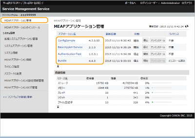 [MEAPアプリケーション管理] ライセンスファイルを操作するアプリケーションをクリックする