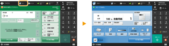 <ホーム>画面に表示されている機能のショートカットを作成することができます。他の機能を操作している途中でもショートカットが表示されていれば、<ホーム>画面に戻ることなく機能を呼び出すことができます。なお、ショートカットを作成するには、管理者としてログインする必要があります。ログインする