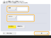 マイボタンを登録するには、個人認証管理でログインする必要があります。個人認証管理を開始する <ファイル送信/参照時の認証で使用する情報>で<本機ログイン時の認証情報>を設定している場合は、マイボタンに登録する内容に宛先のパスワードは含まれません。<ファイル送信/参照時の認証で使用する情報> 共有ボタン/マイボタンとして登録可能な上限は管理機能を参照してください。 マイボタンを共有ボタンに変更したり、共有ボタンをマイボタンに変更することはできません。一度、呼び出してから、<メニュー>から、別のボタンとして登録してください。 登録したボタンを長押しすることで、名称/コメントの変更、移動、削除が可能です。<ホーム>画面の<メニュー>から同じ操作(名称/コメントの変更、移動、削除)が可能です。<ホーム>画面をカスタマイズする マイボタンはパーソナライズデータの対象として、設定の同期で複数の本体で共有することができます。パーソナライズできる項目一覧 共有ボタン/マイボタンに登録できる設定内容について共有ボタン/マイボタンに登録できる機能とその設定内容は次のとおりです。 <コピー>機能の、<よく使う設定>で登録できる設定内容 コピー時の手間を減らす <ファクス>機能の、本体でのファクス機能 ファクス送信の基本操作 <スキャンして送信>機能の、<よく使う設定>で登録できる設定内容 スキャンの便利な機能 <スキャンして保存>機能の、<よく使う設定>で登録できる設定内容 スキャンして保存するときの設定画面/操作について <スキャンして保存>機能と<保存ファイルの利用>機能の、保存先のフォルダー 保存スペースを活用する <受信トレイ>機能画面へのショートカット サーバーへのアクセスやログイン用のパスワードを共有ボタン/マイボタンに登録できます。登録したボタンを呼び出す際、パスワードの入力を不要にしたい場合に便利です。一方、登録したボタンを他機にインポートすることが多く、ユーザーのなりすましを防ぎたい場合は、パスワードを登録しないでください。 登録したボタンをインポート/エクスポートする登録したマイボタン/共有ボタンは、リモートUIを使ってインポート/エクスポートすることができます。設定内容を一括してインポート/エクスポートする インポート元の機種によっては、共有ボタン/マイボタンが一括インポートできない場合があります。詳細については、販売店または担当サービスにお問い合わせください。 |
