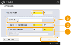 <認証サーバー名を検証>サーバー証明書で共通名(Common Name)を検証するときは<ON>を選び、<認証サーバー名>でログインユーザーが登録されている認証サーバーの名称を入力します。