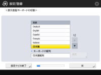 画面に表示させる言語を選びます。言語によっては、文字を入力するときに表示されるキーボードの配列を変更できます。 ![]() ![]() 言語を選び、<OK>を押します。 キーボードの配列を変更する場合は、<設定>を押して配列の種類を選び、<OK>を押します。 表示言語をひんぱんに切り替える場合は、切り替え用のボタンを表示させておくと便利です。表示言語を切り替える | |