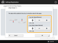 Even if you do not use this setting, curl correction is always performed according to the characteristics of the paper. If you are printing using the optional finisher and the curl is not corrected, adjust the curl correction for the printing conditions and the state of the paper (moisture level, etc.).