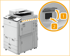 Si le levier du disjoncteur n'est pas passé en position OFF, recommencez l'étape 2. Si le levier du disjoncteur ne passe pas en position OFF alors que vous avez appliqué la procédure ci-dessus deux ou trois fois, contactez votre revendeur ou votre prestataire de maintenance.