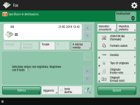 Schermata delle funzioni principali fax