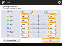 per <Tutti i colori>. Per impostare ciascun colore separatamente, usare i pulsanti a sinistra e a destra di ciascun colore. Al termine della regolazione, premere <OK>.