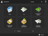 Drücken Sie die Funktionstasten auf dem Bildschirm <Startseite>, um das Grundfunktionsdisplay aufzurufen, wo Sie auf grundlegende Funktionen wie Kopieren, Faxen und Scannen zugreifen können. Obwohl sich die angezeigten und einstellbaren Elemente auf dem Grundfunktionsdisplay je nach Funktion unterscheiden, können Sie die Einstellungen ändern, um sie an Ihre Bedürfnisse anzupassen. Anpassen des Grundfunktionsbildschirms