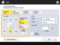 Wenn Sie <Einstell. Option Kopiensatznummerierung> auf <Ein> einstellen, können Sie die Einstellungen wie folgt ändern. <Einstell. Option Kopiensatznummerierung>