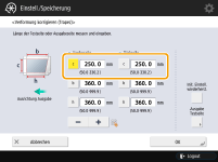 2 | Geben Sie auf dem Bildschirm <Verform.korr. (Paralellgrm)> "250,0" für <c> für die Vorder- und Rückseite ein. |