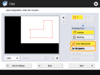 Para cancelar um ponto especificado, pressione <Delete Point>. Para excluir uma área após especificá-la, pressione <Clear Area>.