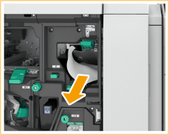 Verifique se há papel encravado na tampa direita da unidade grampeadora de lombada (C6).