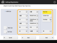 2 | Selecione o tamanho do papel. ![]() ![]() Para informações sobre os tamanhos de papel exibidos quando <Other Size> é pressionado, consulte Papel disponível |