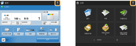 按<主页>屏幕和“基本功能”屏幕上显示的 可以自定义屏幕,例如重新安排按钮或创建快捷键。自定义触摸面板显示屏幕![]() 可以更改屏幕显示的相关设置,例如打开本机后随即显示的屏幕,以及是否显示剩余纸张和墨粉信息。 <显示设置> 可以设置特定时间后未执行操作时要显示的屏幕。 <自动重置后的功能> |