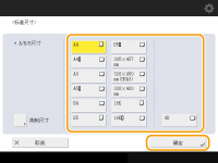 1 | 按<自定义尺寸>。 ![]() 您可以将纸张尺寸指定为 <任意尺寸>,这样就不必再输入纸张尺寸设置。在添加未知尺寸的纸张用于复印时或纸张尺寸已经在打印机驱动程序中注册时指定 <任意尺寸>。 |