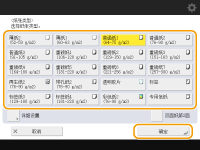 1 | 按<信封>。 信封纸张类型不可从 <纸张类型> 的详情屏幕中选择。如需选取信封纸张类型,请在 <注册常用纸张(多功能托盘)> 中注册纸张类型,然后在步骤 2 中按 <常用纸张> ,即已注册纸张类型的按钮 <确定>。注册多功能托盘的常用纸张尺寸和类型 |