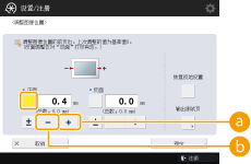 1 | 在<调整图像位置>屏幕 为<缩放倍率(f)>和<缩放倍率(d)>设置放大/缩小比率(%) 按<完成>。![]() <缩放倍率(f)>按照输入比率,沿着与进纸方向平行的方向放大或缩小图像。 <缩放倍率(d)>按照输入比率,沿着与进纸方向垂直的方向放大或缩小图像。 必要时,再次尝试打印出测试页纸张并检查校正量。 |