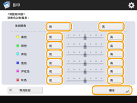 按鈕。若要個別設定色彩,請使用各色彩左側及右側的按鈕。調整完成時,按下 <確定>。