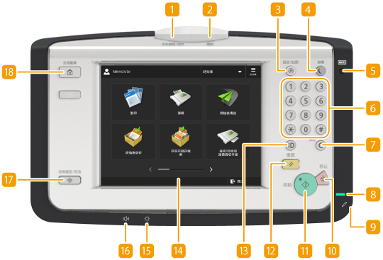: | 正在處理/資料指示燈 正在執行傳送或列印等操作時閃爍。有等待處理的文件時亮起綠燈。 |