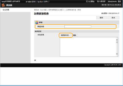 您也可以僅允許具有管理員權限的使用者從遠端使用者介面註冊/編輯接收者,以管理使用者群組通訊清單。<使用使用者群組位址清單>