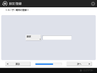ファクス機能を使うために必要な設定を行います。 ![]() ファクス機能が搭載されていない場合は、Step 11に進みます。 ![]() ファクス番号を入力し、<次へ>を押します。 ファクスの設定について詳しくは、ファクスの設定をするを参照してください。 ![]() ![]() <設定>を押してユーザー略称を入力し、<次へ>を押します。 ![]() ![]() 回線種類を選び、<次へ>を押します。 ![]() ![]() ファクス機能のみ使う場合は<自動受信>、電話機やハンドセットを接続しているときは<FAX/TEL切替>を押し、<OK>を押します。 | |