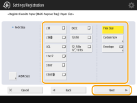 1 | Press <Custom Size>. ![]() You can specify the paper size as <Free Size>, which eliminates the need to enter the paper size setting. Specify <Free Size> when you load paper of unknown size to use for copying or when the paper size is already registered in the printer driver. |