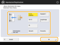 Premere <Preferenze>  <Impostazioni carta>  <Registrazione carta preferita (Vassoio multiuso)>.