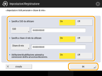 I singoli utenti possono personalizzare le condizioni di funzionamento al fine di soddisfare le proprie esigenze e preferenze. Ad esempio, gli utenti di lingua inglese possono fare in modo di visualizzare all'accesso la versione inglese del display, mentre altri utenti possono registrare il proprio SSID e chiave di rete al fine di consentire una semplice connessione della macchina ai propri dispositivi mobili. In quanto tali impostazioni vengono abilitate solamente all'accesso dell'utente che le ha configurate, queste non influenzano le impostazioni effettuate da altri utenti.