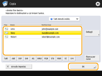 La destinazione dell'e-mail di notifica deve essere specificata dalla Rubrica. Registrare anticipatamente la destinazione desiderata. Registrazione delle destinazioni nella Rubrica |