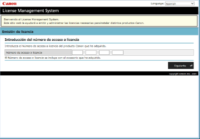 Abra un navegador para acceder a http://www.canon.com/lms/license/