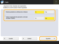 (Inicio). Seleccione <No> si desea iniciar la copia manualmente pulsando