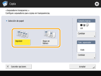 | | Al copiar en transparencias, puede evitar que las transparencias se queden pegadas insertando hojas entre ellas. También puede imprimir en las hojas insertadas. |