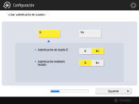 La Guía de configuración no se puede reiniciar en los casos siguientes.Si están configurados la autenticación de usuario o el ID de departamento. Si está configurada la Autenticación de ID de departamento. Si se realiza la autenticación con una tarjeta. |