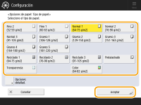 Seleccione el tipo de papel y pulse <Aceptar>.
