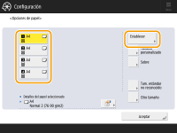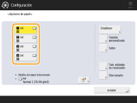 Si no se muestra el tipo de papel cargado, pulse <Opciones detallad.> para seleccionarlo de una lista.